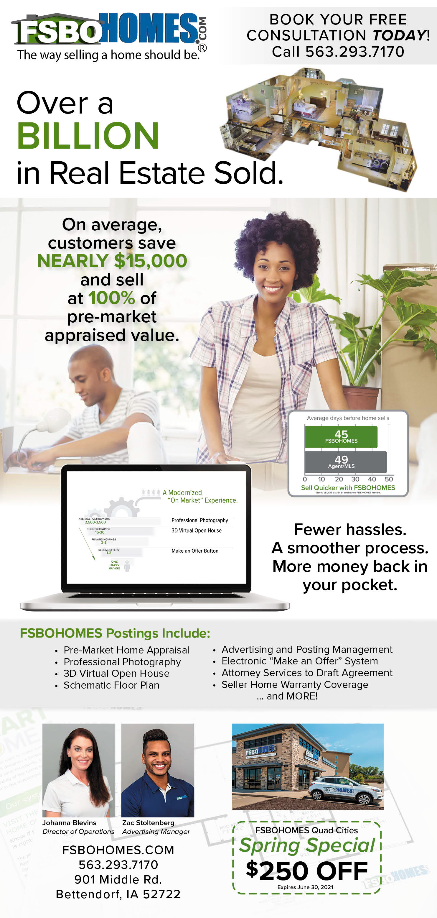 April and May 2021 Quad City Times Newspaper Ad (below)